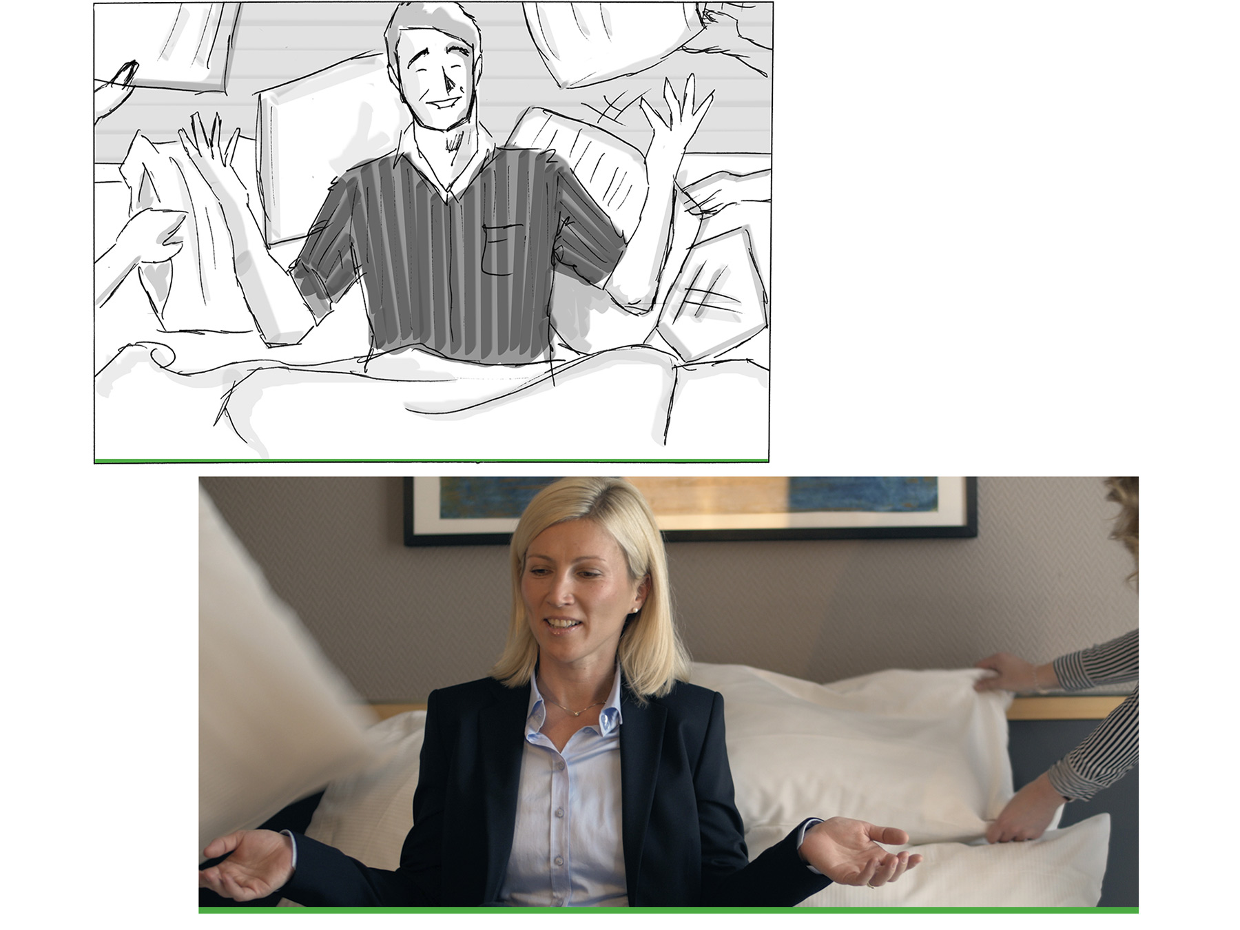 ART & DESIGN hat das Holiday Inn über drei Projektphasen zum finalen Produkt geführt. In der Filmkonzeption sind verschiedene Kampagnenideen entwickelt und visualisiert worden. Anschließend sind in der Kreation alle Szenenabläufe in einem Storyboard gezeichnet und geplant worden, welches der Regie am Filmset eine klare Struktur an die Hand gibt. Zudem sind passende bzw. authentische Models recherchiert worden, um das Image des Holiday Inn bestmöglich zu transportieren. Abschließend sind an einem Drehtag vier Kampagnenclips an verschiedenen Locations des Holiday Inn produziert worden.